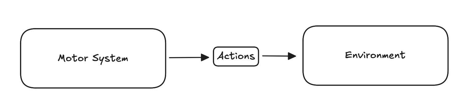 At a high level, Actions are created by the Motor System and actuated by the Environment.